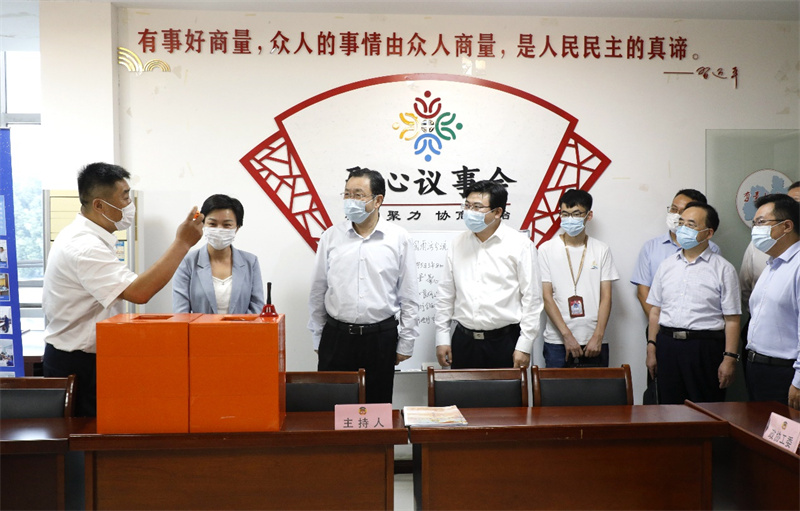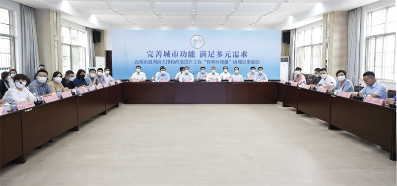 随后,杨岳一行参加了“完善城市功能、满足多元需求”专题协商议事会,与驻点委员、群众代表以及有关部门负责人一道,就“西湖街道湖滨大排档改造提升工程”开展协商议事。杨岳指出,此次协商议事活动选题精准、建议务实、氛围融洽,大家各抒己见、畅所欲言,取得了理性沟通、达成共识的协商效果,实现了问题在协商中解决、人心在协商中团结、共识在协商中凝聚。