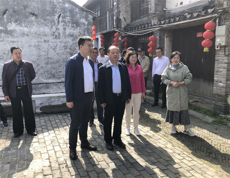 马建立一行先后考察了前黄镇杨桥古村,天宁区焦溪古镇、查家村,以及金坛区诸葛八卦村(鲁墅村)、柚山村,通过实地参观、面对面交流,全面了解当地文化古镇古村保护、开发和利用工作中的经验做法和特色亮点等情况。