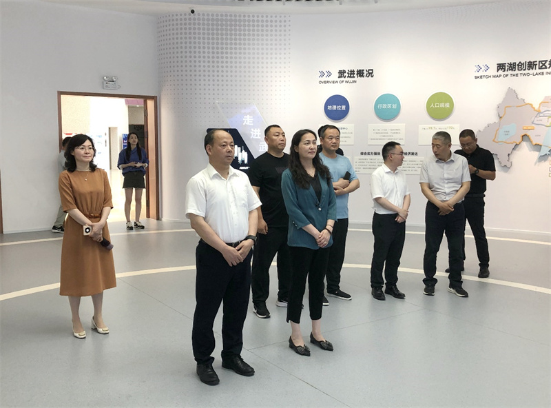 在武进城市展示馆,考察组一行参观了“走进武进”“产业奋进”“多元并进”“城市精进”“未来同进”五个展区,详细了解了武进城市发展沿革、辉煌成果和未来宏图。在西太湖揽月湾,考察组一行与大家现场热烈交流讨论,实地了解“两湖”创新区规划建设、周边文化旅游资源及主要地标建筑等情况。刘文君对我区城市地标带动经济社会发展工作给予了高度评价,认为相关工作经验值得借鉴和学习。