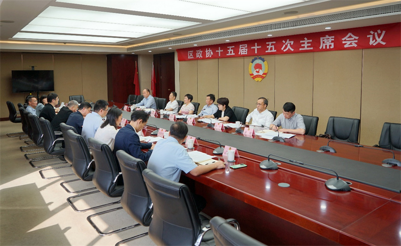 10月31日,区政协召开十五届十五次主席会议,围绕“持续改善我区环境空气质量”和“加大非遗保护传承力度,助推文旅深度融合”两个课题进行协商。区政协领导郑政平、蒋红英、徐宁、朱红兴、谈胜、马建立参加会议,副区长朱岩应邀参加协商。