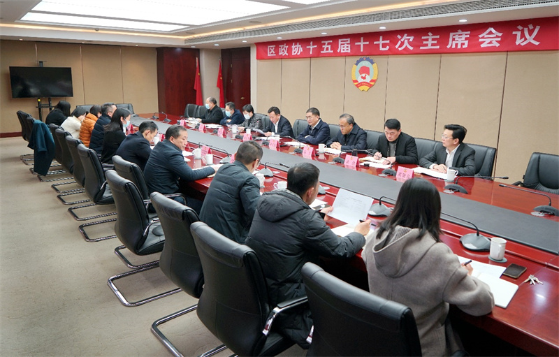 1月31日,区政协召开十五届十七次主席会议。区政协主席、党组书记郑政平主持会议并讲话,区政协领导祝正庆、蒋红英、徐宁、朱红兴、谈胜、马建立、夷建良参加会议。