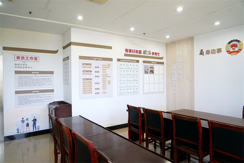 湖塘镇“烛心港”委员工作室位于武进人民商场。“烛心”代表着光明和指引,“港”字寓意着一个安全可以依靠的港湾。这里融合委员书屋、委员讲习所等功能,作为委员们协商议政、学习交流、服务群众、凝聚共识的阵地,跨越界别限制,提供工商管理、法律艺术、教育医疗、直播电商等专业方向的服务,如同一个温馨的港湾,为群众排忧解难、送去关怀。