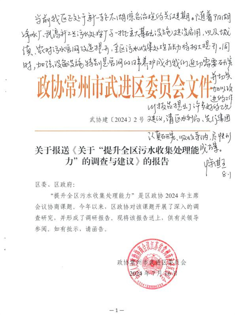 ——恽淇丞区长对《关于“提升全区污水收集处理能力”的调查与建议》的报告作出了批示。