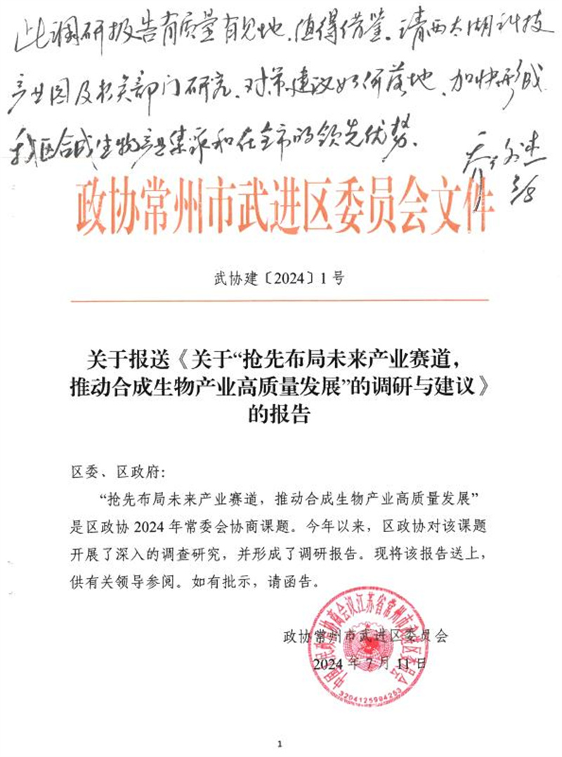 ——乔俊杰书记对《关于“抢先布局未来产业赛道,推动合成生物产业高质量发展”的调研与建议》的报告作出批示。