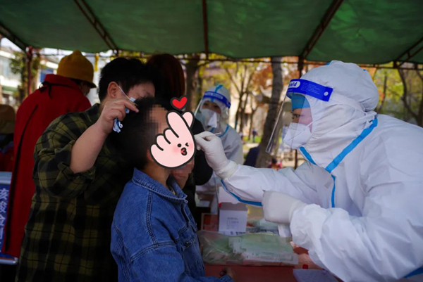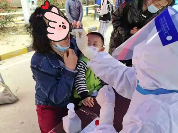 冯小芬和同事们爬楼入户,为管控区的年幼孩童、年迈老人等进行核酸采样,提供人性化温情服务,打通了核酸筛查“最后一公里”。