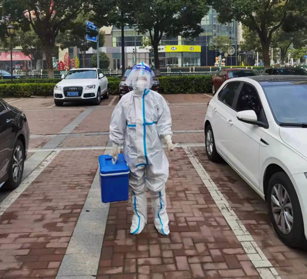 3月13日以来,杨芝香与武进高新北区工作组采样队到抗击疫情第一线,进行核酸采样工作。她早出晚归披星戴月,以最高质量、最快速度助力居民核酸采样工作顺利开展。