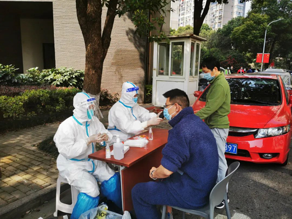 3月15日,吴齐虹参加雪堰镇全民核酸采样工作。在雪堰镇雪西村第三采样点,她连续工作十几个小时,共采样1450余人次。