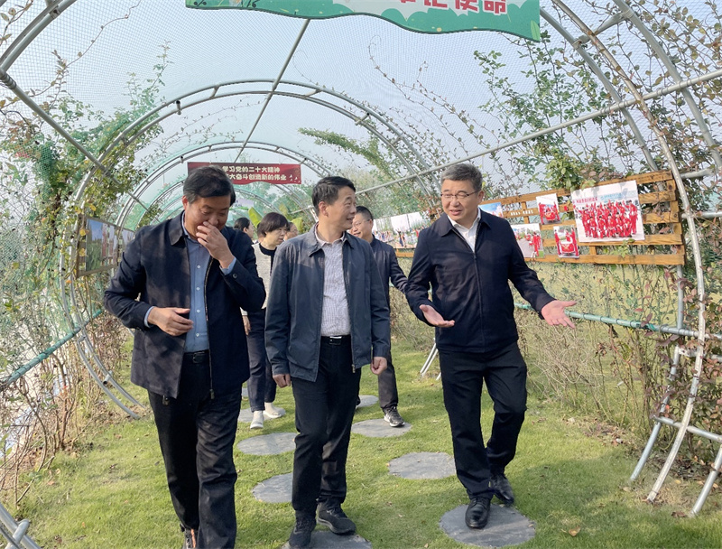 谈胜一行首先来到葛庄村安全大塘湿地公园,实地走访参观了党建情景式公园、网格党群直通站、水情教育基地等基层治理阵地,切实感受湟里镇经济发达镇培育与“三治融合”工作在乡村振兴中的探索与实践。